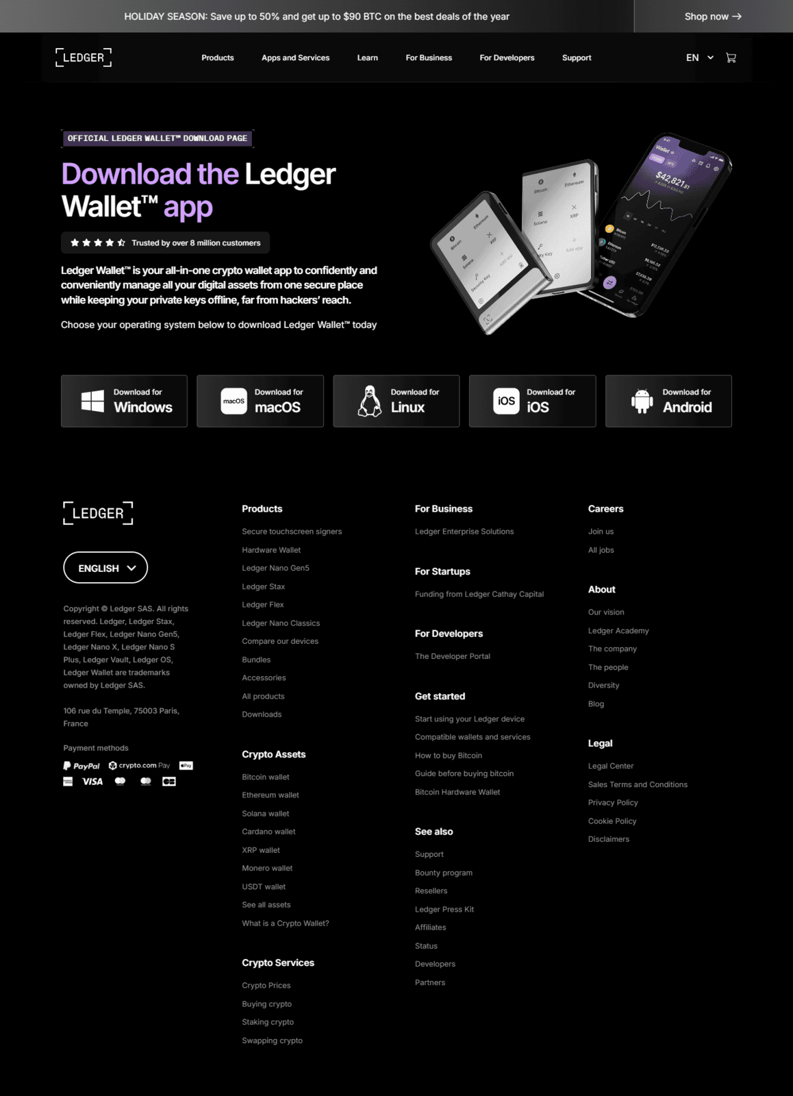 Always use the official site: Only download apps and firmware from Ledger.com/start.